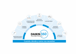 - Daikin360 ofrece asistencia integral, digital y personalizada, desde la instalación hasta la modernización, con mantenimiento predictivo y supervisión en tiempo real.